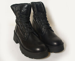 Damskie trzewiki marki Panama Jack z linii Clementine w klasycznym czarnym kolorze to eleganckie i wygodne obuwie na co dzień. Wykonane z wysokiej jakości skóry, z zapięciem na sznurowadła, oferują styl i idealne dopasowanie. Wnętrze wykończone materiałem tekstylnym oraz skórzana wkładka zapewniają komfort noszenia. Trwała podeszwa z tworzywa syntetycznego, 5 cm obcas oraz 3 cm platforma dodają subtelnej wysokości i stabilności. Wyprodukowane w Hiszpanii. gwarantują wysoką jakość i dbałość o detale. Kod produktu: Clementine B3