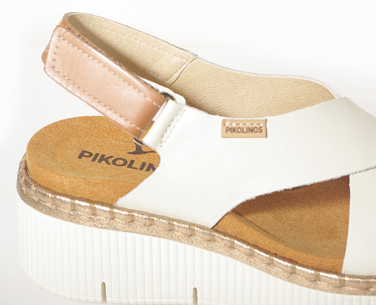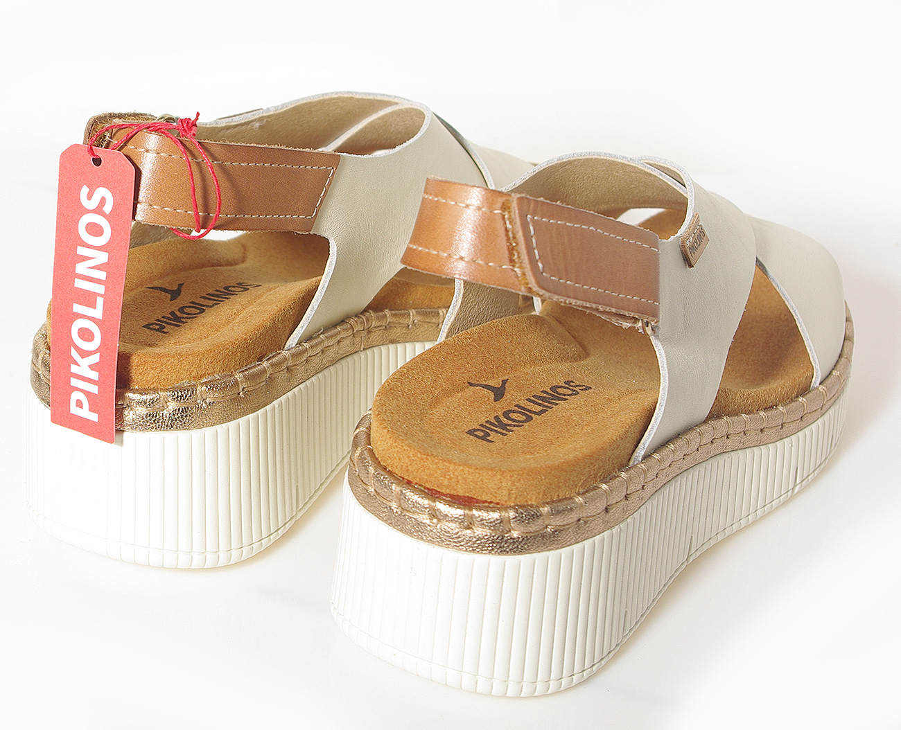 Stylowe sandały damskie Pikolinos z linii GOMERA to idealne połączenie wygody i letniego designu. Model W0K-0606C1 w harmonijnym zestawieniu beżu i brązu został wykonany z wysokiej jakości skóry naturalnej. Zapięcie na rzepy zapewnia szybkie i wygodne dopasowanie do stopy. Tekstylne wnętrze i wkładka zwiększają komfort użytkowania, a lekka, syntetyczna podeszwa typu extralight gwarantuje wygodę przez cały dzień. Obcas o wysokości 6 cm i platforma 3 cm dodają sylwetce lekkości, jednocześnie zapewniając stabilność. Projekt inspirowany hiszpańskim stylem – designed in Spain.