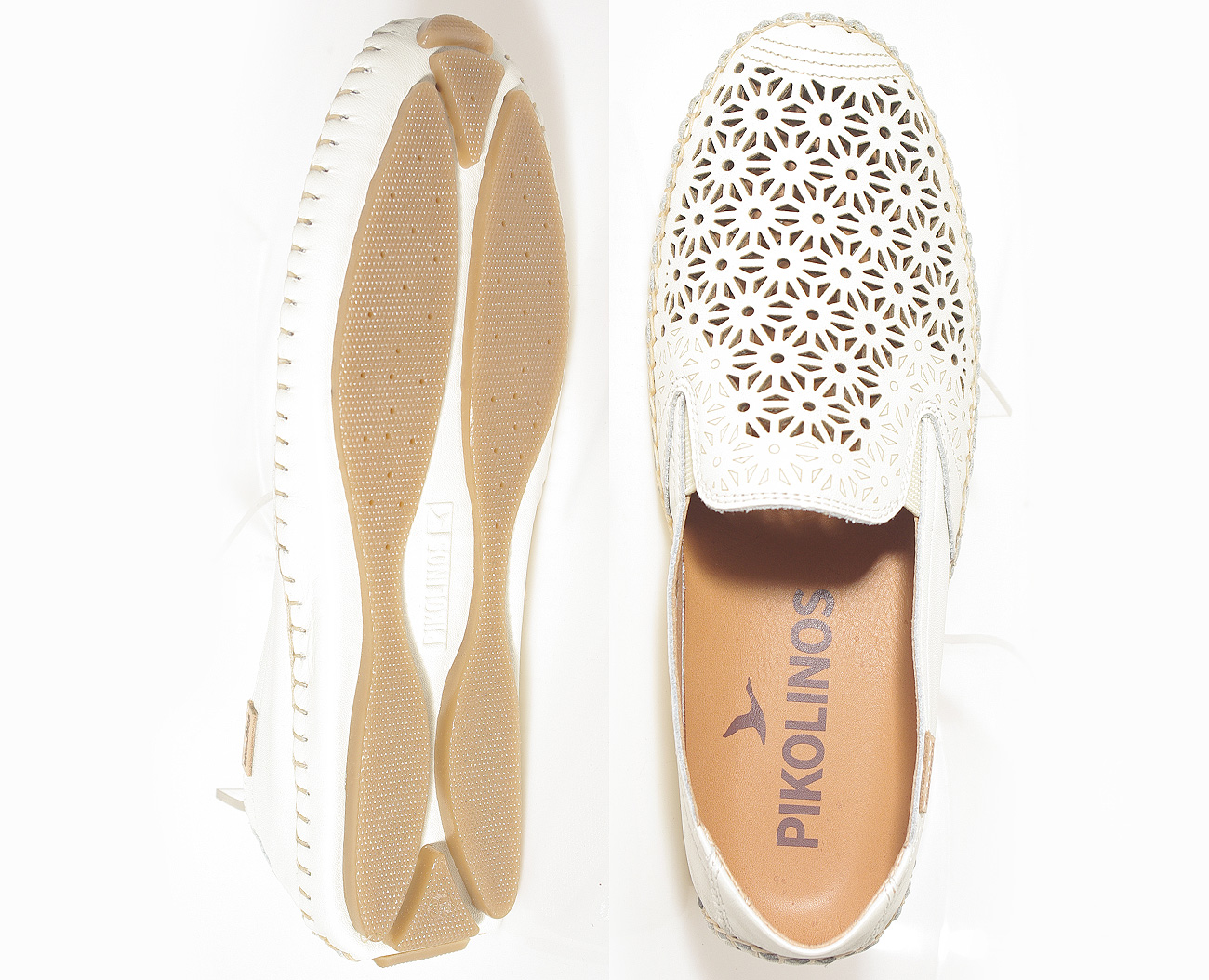 Damskie mokasyny Pikolinos Jerez 578-4976 w beżowym kolorze to eleganckie i wygodne obuwie wsuwane. Wykonane w całości z wysokiej jakości skóry, zapewniają doskonały komfort noszenia. Skórzana wkładka i elastyczna gumowa podeszwa gwarantują wygodę na co dzień. Model wyposażony w wyjmowane wkładki.
