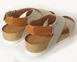Stylowe sandały damskie Pikolinos z linii MAHON to idealne połączenie komfortu i letniej elegancji. Model W9E-0912 w naturalnym połączeniu beżu i brązu został wykonany z wysokiej jakości skóry naturalnej, zarówno na zewnątrz, jak i wewnątrz, co zapewnia wygodę noszenia przez cały dzień. Zapięcie na rzepy umożliwia szybkie dopasowanie do stopy. Sandały wyposażono w miękką, amortyzującą wkładkę oraz lekką podeszwę z tworzywa syntetycznego. Obcas o wysokości 4 cm i platforma 2 cm gwarantują stabilność i komfort. Model wykonany w Hiszpanii – 100% comfort i extralight.