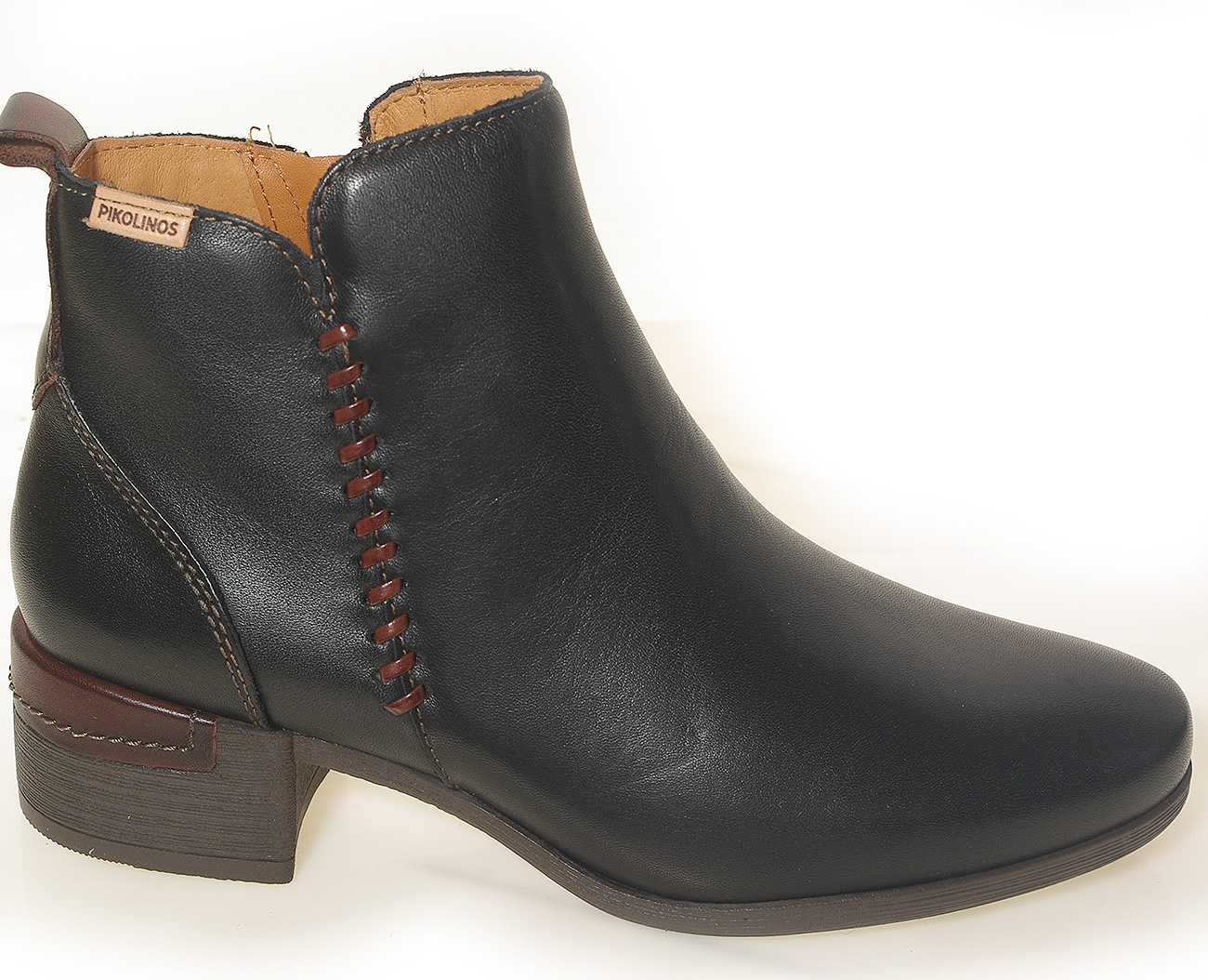 Botki damskie marki Pikolinos z linii MALAGA w eleganckim czarnym kolorze to idealne połączenie stylu i komfortu. Wykonane z wysokiej jakości skóry, z praktycznym zapięciem na suwak. Wnętrze wykończone materiałem tekstylnym i skórą, a skórzana wkładka zapewnia wygodę podczas noszenia. Trwała podeszwa z tworzywa syntetycznego oraz 4 cm obcas dodają elegancji i subtelnej wysokości. Wyprodukowane w Hiszpanii, gwarantują 100% komfortu i najwyższą jakość wykonania. Kod produktu: W6W-8950