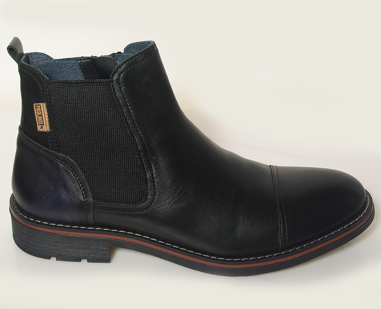 Męskie botki Pikolinos YORK (M2M-8022C1) w kolorze czarnym, wykonane z wysokiej jakości skóry. Posiadają praktyczne zapięcie na suwak, skórzano-tekstylne wnętrze oraz komfortową wkładkę PU/skórzaną. Osadzone na solidnej podeszwie z tworzywa syntetycznego. Leather, removable insoles, 100% comfort, Made in Spain.