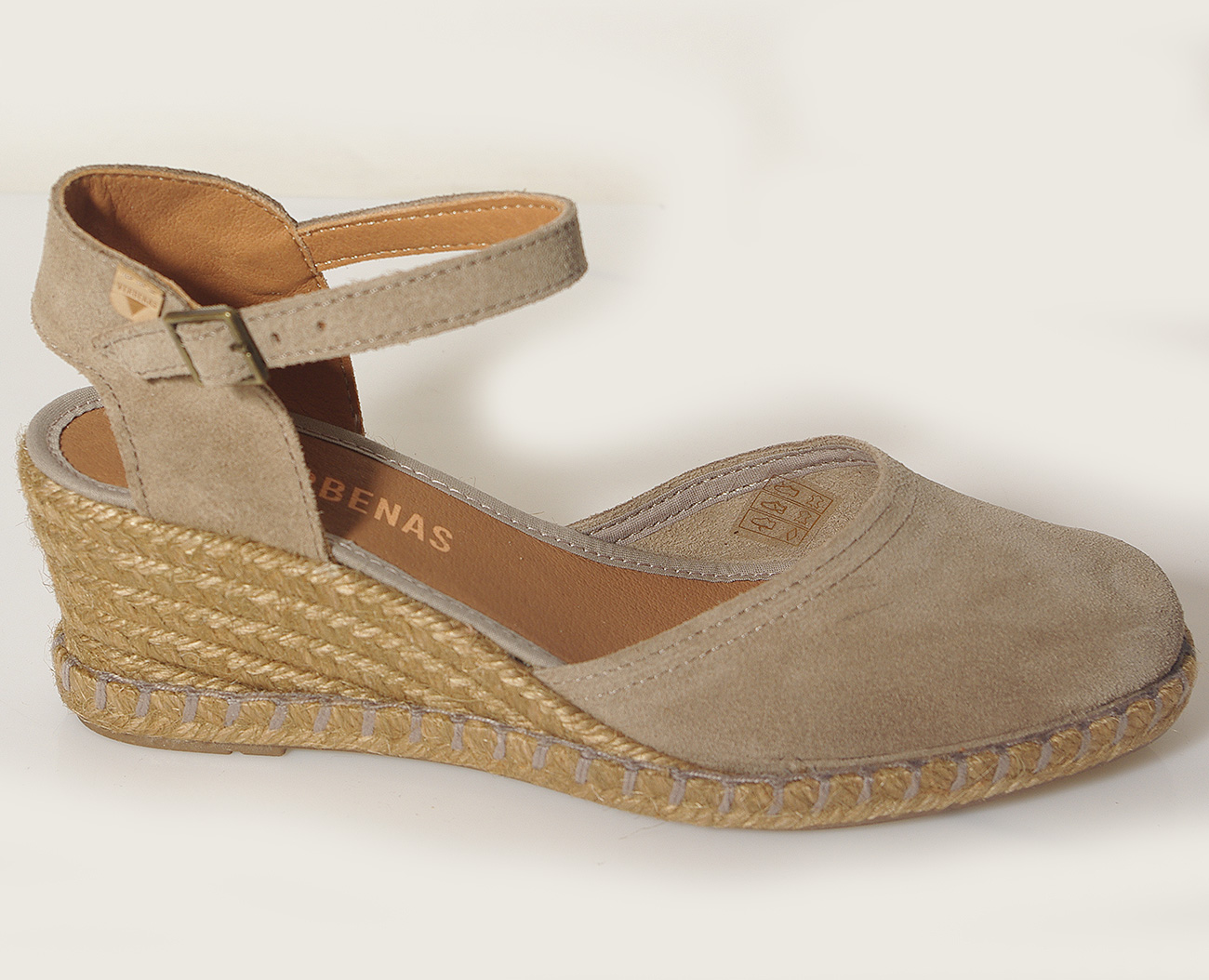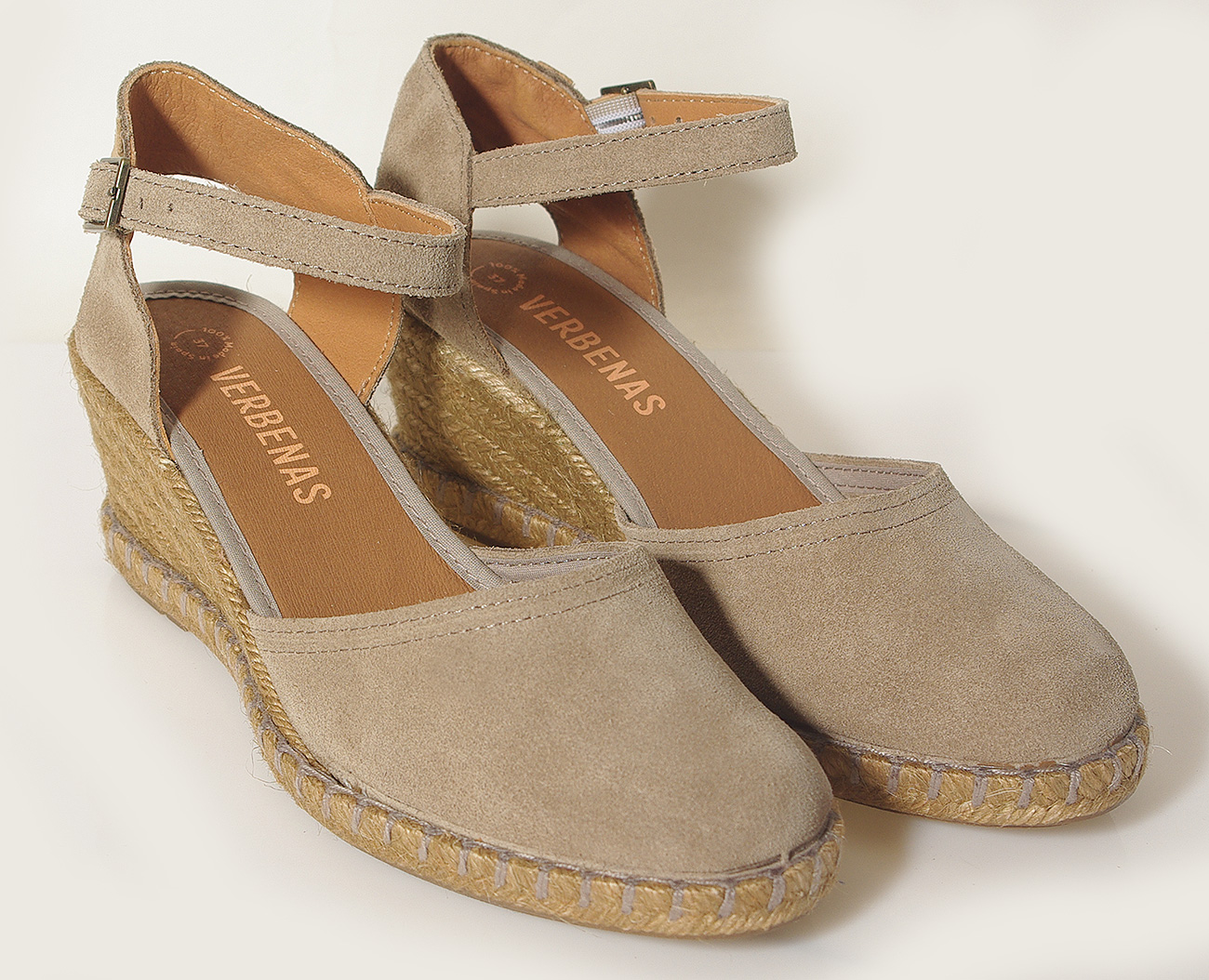 Espadryle damskie Verbenas MALENA 0601540785 w eleganckim beżowym kolorze to idealne połączenie stylu i letniej lekkości. Wykonane z miękkiej skóry zamszowej, z naturalnym skórzanym wnętrzem, zapewniają wysoki komfort noszenia. Zapięcie na sprzączkę umożliwia dobre dopasowanie do stopy. Pleciona podeszwa z juty połączonej z gumą nadaje im charakterystyczny, wakacyjny wygląd, a stabilny obcas o wysokości 6 cm i platforma 1,5 cm gwarantują wygodę. Model wyprodukowany w Hiszpanii z wysokiej jakości materiałów.