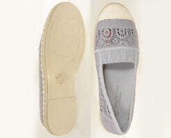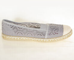 Bardzo wygodne, kobiece espadryle damskie z ażurowej, przypominającej koronkę tkaniny w kolorze szarym na elastycznej podeszwie – idealne dopełnienie letniej stylizacji. Kod producenta: dd1834