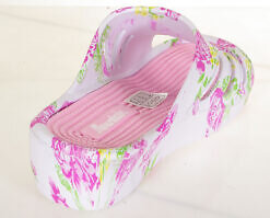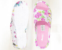 Klapki damskie w kolorowy kwiatowy motyw na wygodnym koturnie – przewiewne, super lekkie, łatwe do utrzymania w czystości i bardzo praktyczne.